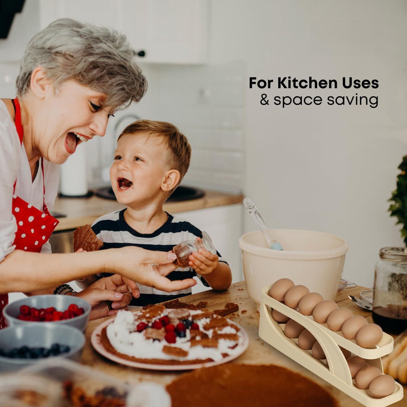 Two-Tiered Design: Accommodates 12-14 standard, large, or jumbo eggs, maximizing storage space while maintaining organization.